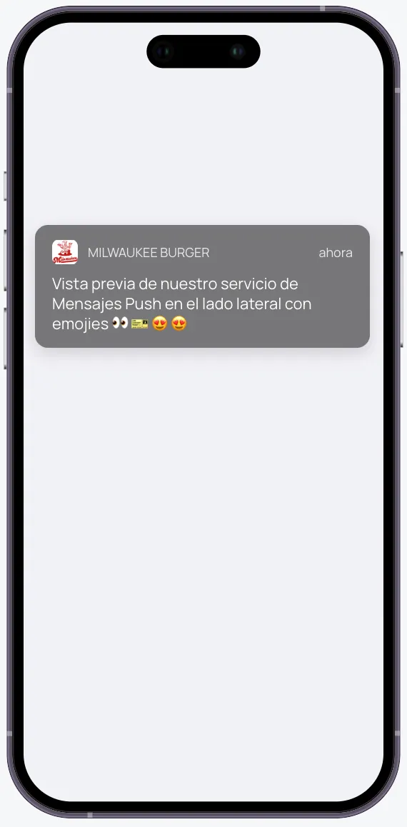 Notificaciones silenciosas con tu logo (no molestan), y programadas para que se envíen de manera automática, o las enviaremos cuando tú desees hacer un anuncio o promoción puntual.