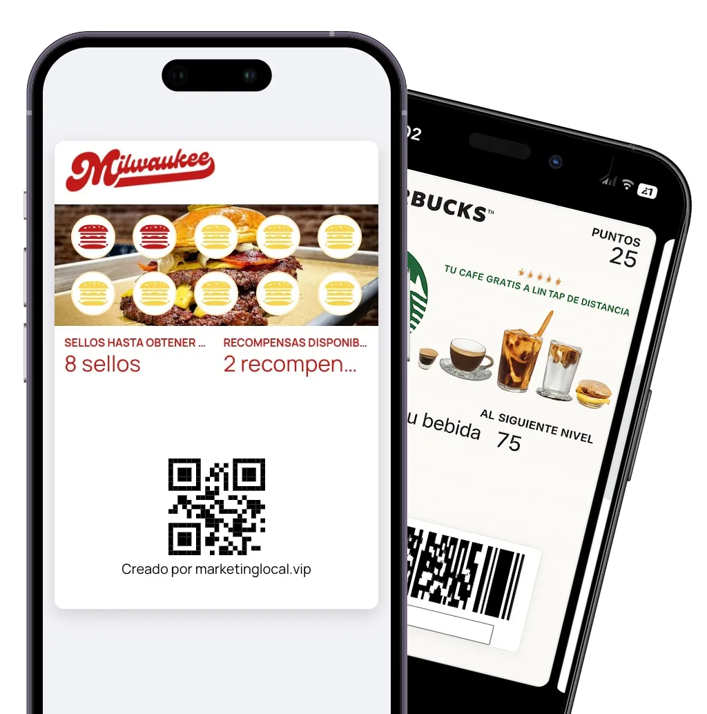 Creamos tarjetas de fidelización digitales que tus clientes guardarán en su móvil (Apple o Google Wallet).